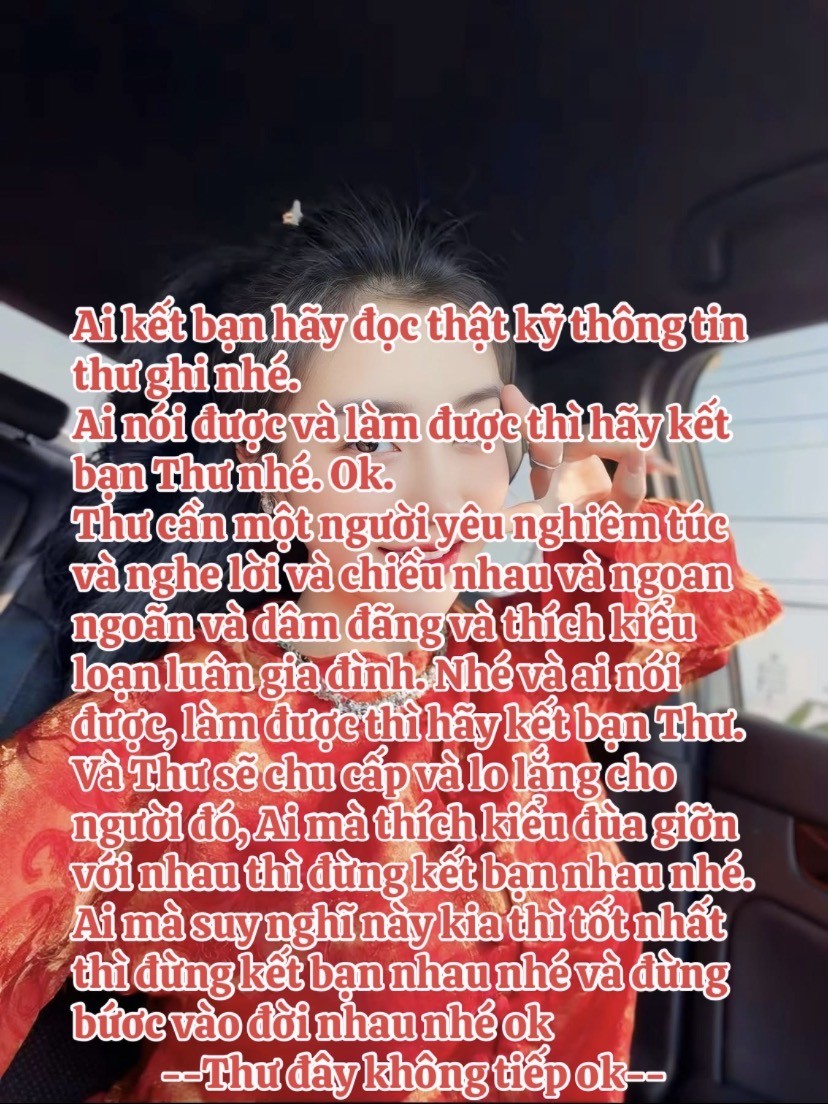 Ai kết bạn em thì thông thật kỹ cái thông tin em ghi nhất và tất cả là không nhắn tin, không hình và không nhắn tin nhanh thì đừng có kết bạn em và nhắn tin xem không trả lời cũng đừng kết bạn em nhé và đọc kỹ thông tin nhé Ok thì kết bạn **** Thư